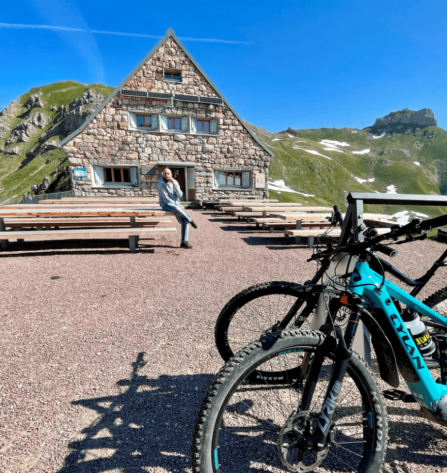 Die Tour beginnt bei Steg und führt in leichter Steigung ins Valünatal. Hinter den Alpgebäuden setzt die Steigung in Richtung Alp Gritsch und von dort weiter zur Pfälzerhütte an. Der Anstieg ist anspruchsvoll und von geübten Bikern gut zu bewältigen. Auf der Anhöhe belohnt Sie ein herrlicher Ausblick auf die imposante Bergkulisse, die hier und da vielleicht schon leicht vom