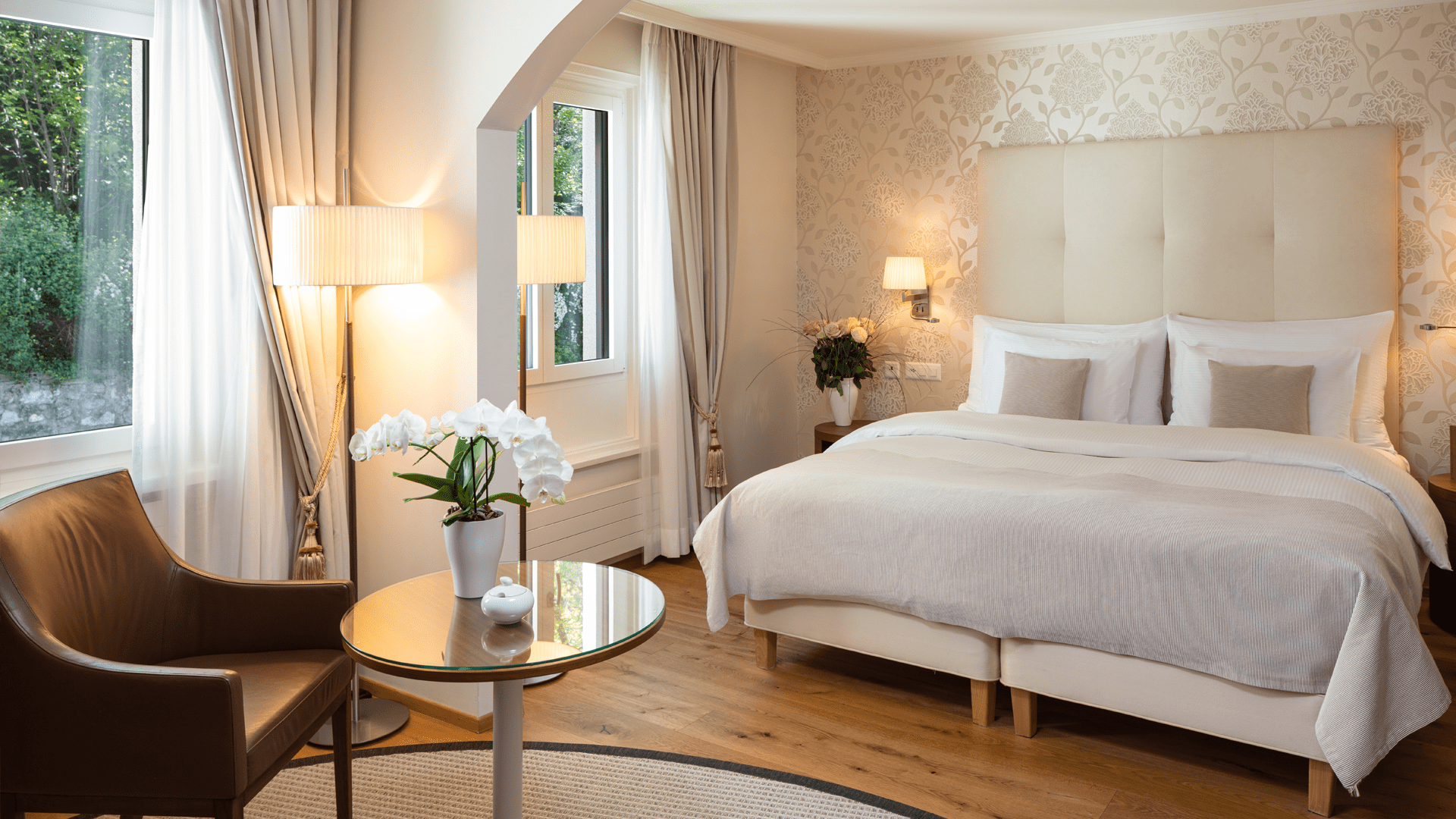 Als wenn die Natur ins Zimmer zu kommen scheint - so empfängt Sie das Deluxe-Doppelzimmer. Der frische Duft von Wald und Moos, aber auch die Ruhe, die nur von Vogelgezwitscher oder dem fernen Rauschen eines Baches begleitet wird, lässt Sie in pures Wohlfühlen eintauchen.